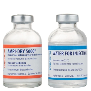Ampi-Dry® 5000 is geïndiceerd in de acute fase van infecties waarbij behoefte is aan een bactericide antibioticum, zoals kan voorkomen bij: